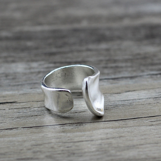 טבעת יצוקה בצורה אמורפית לא סגורה בצבע כסף
