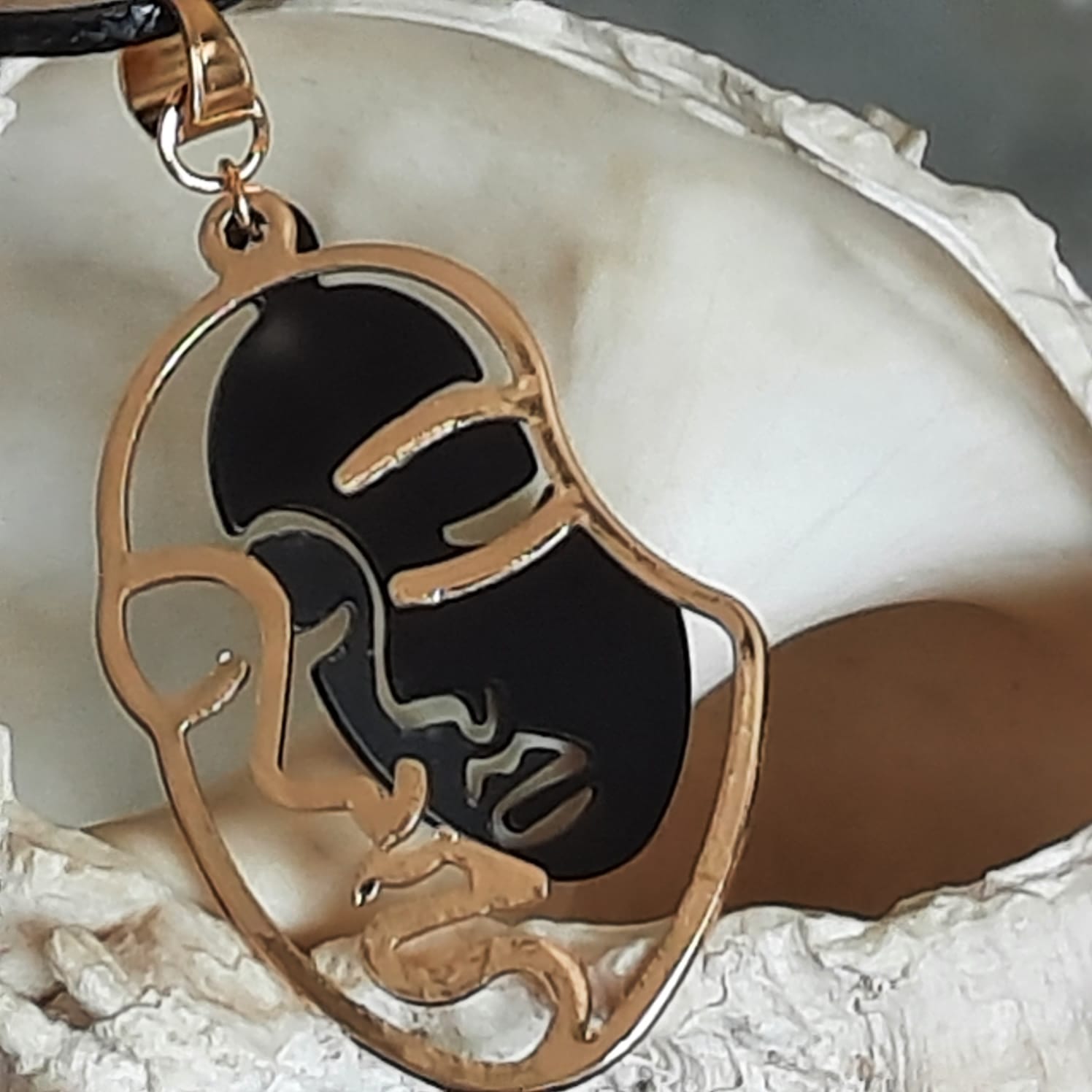 | תאור | שרשרת קלועה בצבע שחור בתוספת תליון מוזהב ותליון אקריליק שחור |