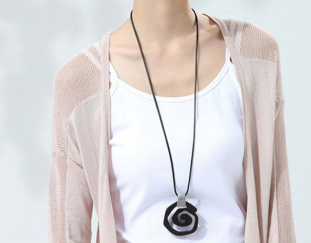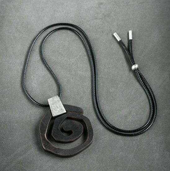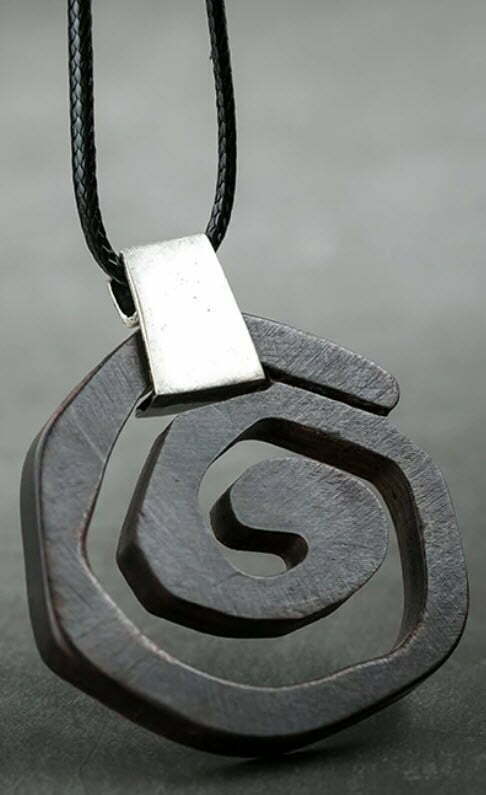 שרשרת ניתנת להארכה וקיצור מעוטרת ספירלה עשויה מגזע עץ אלגם (עץ ריחני ייחודי הגדל בהודו)